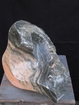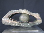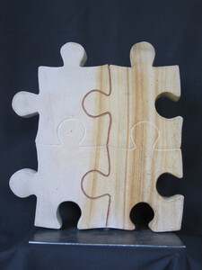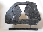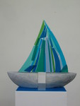 2015Beeld "divorce" staat voor de huwelijksboot die gebroken is. De verbinding moet goed blijven omwille van de kinderen. Speksteen beeld met glasfusing zeil.